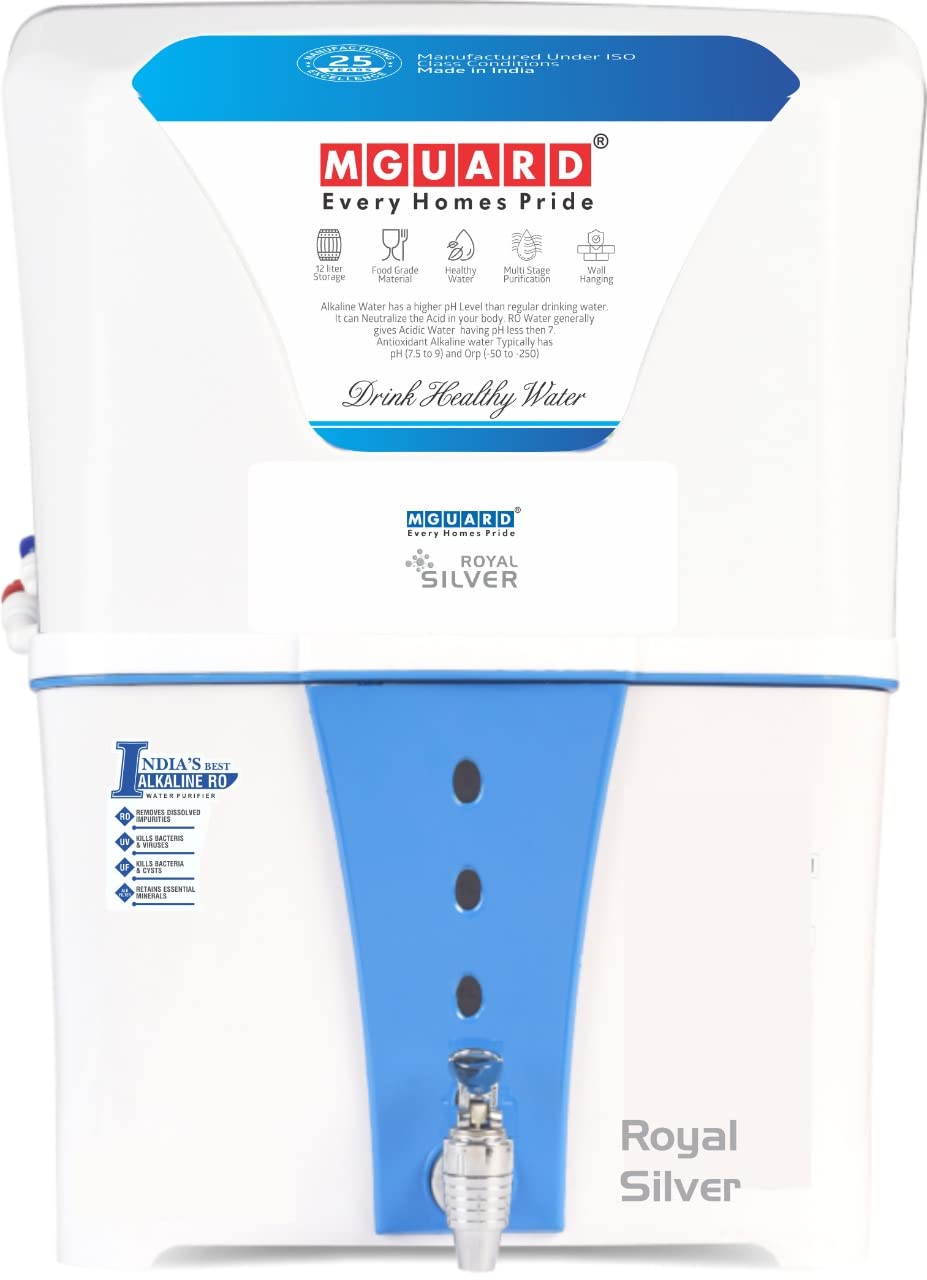 MGUARD ROYAL SILVER RO + UV + UF + TDS water purifier for home and kitchen with pre filter alkaline filter and copper filter white